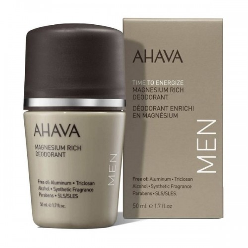 2. Ahava Men Time To Energize Magnesium Rich Roll On Deodorant Men Αντρικό Αποσμητικό 50ml. Αποκλειστικά για άνδρες, χωρίς οινόπνευμα και αλουμίνιο, εμπλουτισμένο με μεταλλικά στοιχεία της Νεκράς Θάλασσας και Βιταμίνη Ε. Στεγνώνει γρήγορα, καταπραΰνει και προστατεύει ακόμα και το πιο ευαίσθητο δέρμα και διατηρεί τις μασχάλες χωρίς μυρωδιά για ώρες.