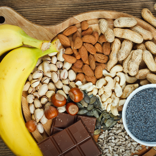 - Ξηροί καρποί: Αμύγδαλα, καρύδια και φιστίκια είναι πλούσια σε μαγνήσιο, αλλά και σε υγιεινά λίπη και βιταμίνες.