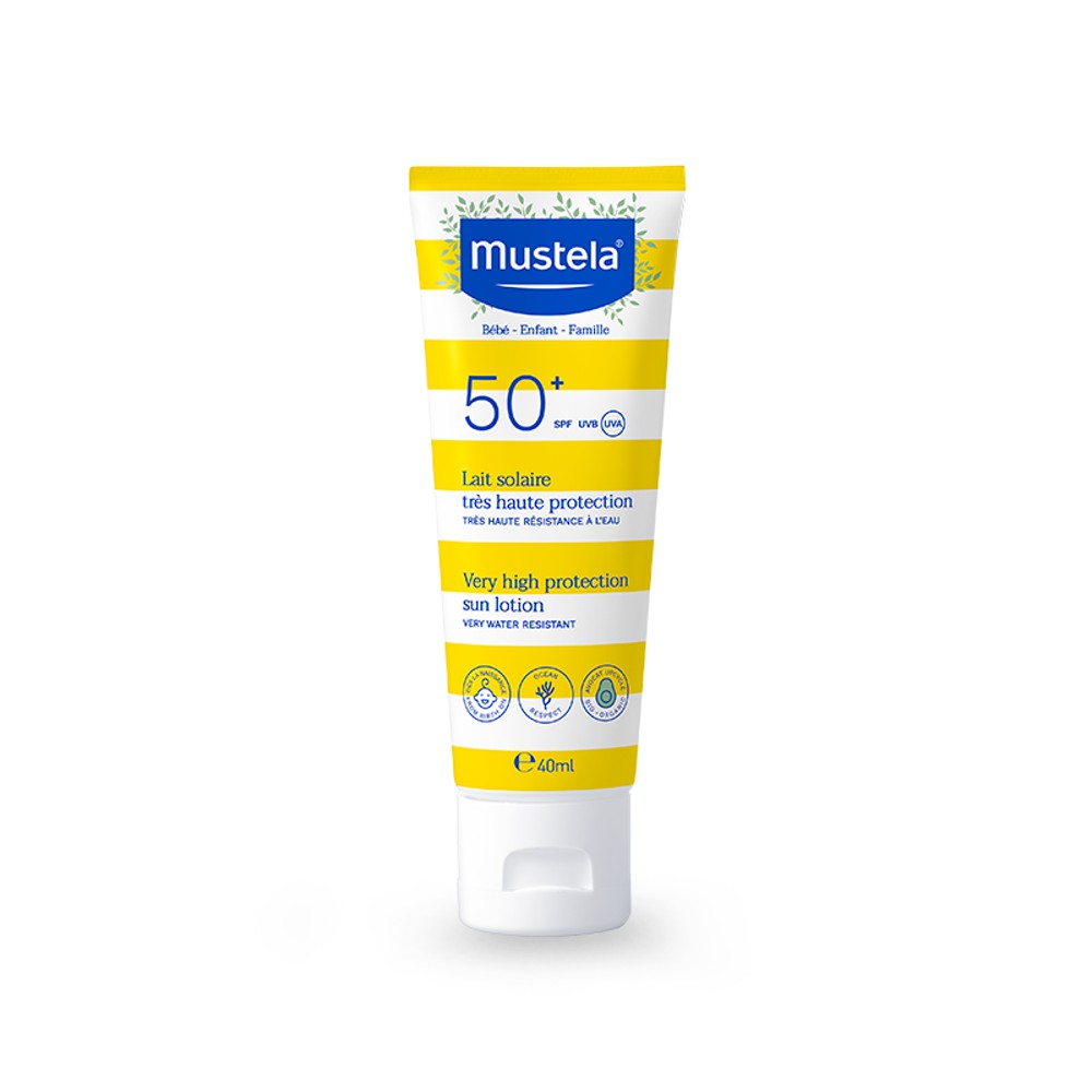 2. Mustela Very High Protection Sun Lotion SPF50+ Αντιηλιακό Προσώπου και Σώματος, 40ml. Το Mustela Very High Protection Sun Face Lotion SPF50+ είναι ένα αντηλιακό προσώπου για βρέφη και παιδιά με πολύ υψηλή προστασία από UVB και UVA, κατάλληλο για χρήση από τη γέννηση. Κατάλληλο για φωτοευαίσθητα και μη ανεκτικά δέρματα, συμπεριλαμβανομένου και του ατοπικού δέρματος
