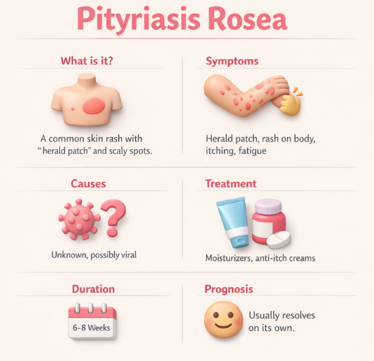 Η ροδόχρους πιτυρίαση μπορεί να φαίνεται ανησυχητική στην αρχή, αλλά στις περισσότερες περιπτώσεις είναι προσωρινή και σπάνια προκαλεί σοβαρά προβλήματα. Με τη σωστή φροντίδα, το δέρμα ανακάμπτει πιο άνετα, αφήνοντας πίσω μόνο μια μικρή υπενθύμιση ότι το σώμα ξέρει να φροντίζει τον εαυτό του.