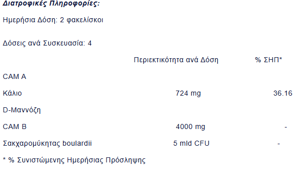 Τα συμπληρώματα διατροφής δεν πρέπει να χρησιμοποιούνται ως υποκατάστατο μίας ισορροπημένης δίαιτας. Να μη γίνεται υπέρβαση της συνιστώμενης ημερήσιας δόσης. Το προϊόν αυτό δεν προορίζεται για την πρόληψη, αγωγή ή θεραπεία ανθρώπινης νόσου. Συμβουλευτείτε το γιατρό σας αν είστε έγκυος, θηλάζετε, βρίσκεστε υπό φαρμακευτική αγωγή ή αντιμετωπίζετε προβλήματα υγείας. Ενδέχεται να υπάρχουν περαιτέρω αλληλεπιδράσεις και παρενέργειες από τις αναγραφόμενες. Να φυλάσσεται μακριά από τα μικρά παιδιά. Να διατηρείται σε σκιερό, ξηρό περιβάλλον και σε θερμοκρασία δωματίου (15-25 ° C), εκτός αν προτείνεται κάτι διαφορετικό από την εταιρία παραγωγής του.