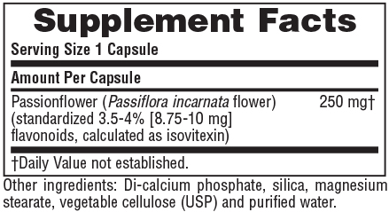 Το Nature's Plus Herbal Actives Passion Flower 250mg έχει περιεκτικότητα 3,5-4% (8,75-10mg) κατ'ελάχιστο σε φλαβονοειδή.