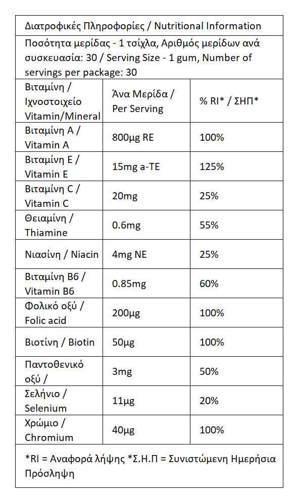 Συνιστώμενη ημερήσια πρόσληψη: 1-2 τσίχλες