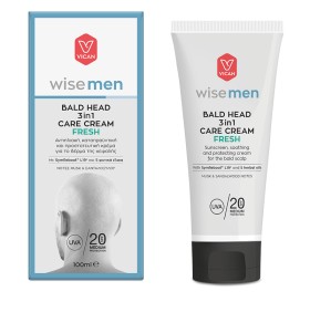 H Wise Men Bald Head 3in1 Care Cream προστατεύει και φροντίζει το εκτεθειμένο δέρμα της κεφαλής από τους εξωτερικούς παράγοντες που το ταλαιπωρούν (έντονο κρύο, ατμοσφαιρικοί ρύποι κ.α.), ενώ η αντηλιακή της δράση SPF20 με φίλτρα UVA/UVB προσφέρει προστασία από την ηλιακή ακτινοβολία. Η ενεργή της σύνθεση με φυσικά συστατικά και έλαια, συμβάλλει στη μείωση ξηρότητας, κνησμού και αίσθησης «τραβήγματος», ενώ απαλύνει τους μικροερεθισμούς που προκύπτουν από το ξύρισμα. Το καινοτόμο συστατικό SymReboot L19 σέβεται το μικροβίωμα της επιδερμίδας, ενώ παράλληλα βοηθά στην ενυδάτωση και τη συνοχή του δέρματος.